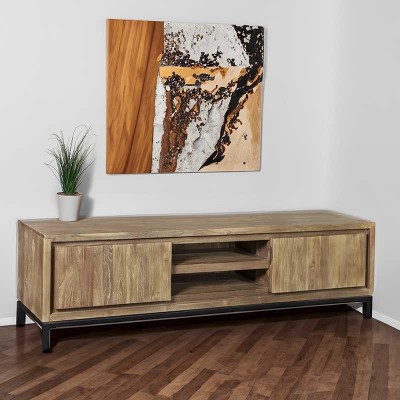 Les meubles TV rustiques apportent une touche naturelle et chaleureuse avec l'utilisation de bois brut et de finitions naturelles. Ils sont parfaits pour les maisons de campagne ou les intérieurs qui souhaitent une connexion plus étroite avec la nature. Complétez ce style avec des éléments comme des tapis en jute, des coussins en laine et des accessoires en fer forgé pour une ambiance confortable et terre à terre.
